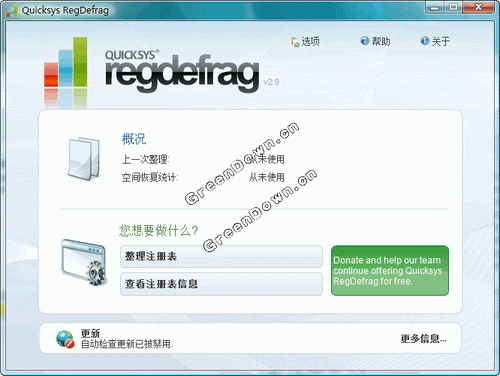 quicksys regdefrag是一个免费的注册表碎片整理工具。它能分析注册表的无用键值,碎片和浪费的空间,优化注册表。支持windows nt/2000/2003/2008/xp/vista,免费!
