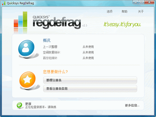 quicksys regdefrag是一个免费的注册表碎片整理工具。它能分析注册表的无用键值,碎片和浪费的空间,优化注册表。支持windows nt/2000/2003/2008/xp/vista,免费!
