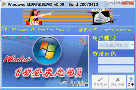 您想进入windows系统时不输入用户名和密码就能进入吗?用『windows自动登录总动员』吧! 每次进入windows桌面前,总会出现一个用户登录的画面,要求输入用户名和密码。这样做的好处是在多人使用一部电脑的环境中安全性有保障。不过,如果电脑只是你一个人使用,每次都必须输入密码,实在是令人讨厌。 更令人讨厌的是,如果你的帐号没有密码,也要让你特意来按一下回车,这实在是让人无法忍受,就让『windows自动登录总动员』来给帮你吧
