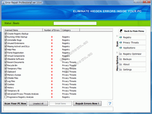 → Error Repair Pro 4.01┊可以检查注册表的错误并且进行修复等┊英文绿色便携版
