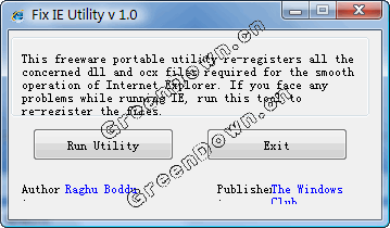 这个免费绿色便携的软件能够注册使ie能够流畅稳定运行相关的dll、ocx文件。只需简单的解压并运行,点击run utility按钮。软件已在ie7、8中测试,在运行时请确保ie窗口完全关闭了
