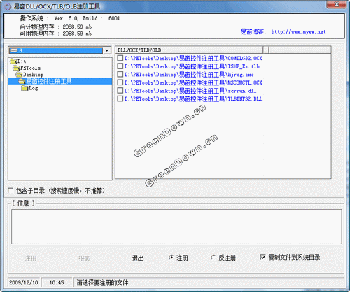 易窗控件注册工具可快速注册dll、ocx、tlb、olb文件,也可快速反注册dll、ocx、tlb、olb文件,任意选择要注册的dll、ocx、tlb、olb文件,同时可注册两个以上dll、ocx、tlb、olb文件