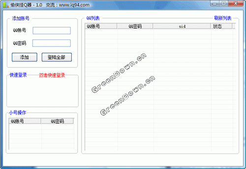 1、3gqq手机协议为封包的接口登录2、支持一键导入文件qq[格式qq----密码]3、支持一键登录qq,双击选中登录4、支持快速登录,接口已经逐步开放5、右键弹出菜单,10个号码操作功能6、支持小号操作,刷新登录,离线登录