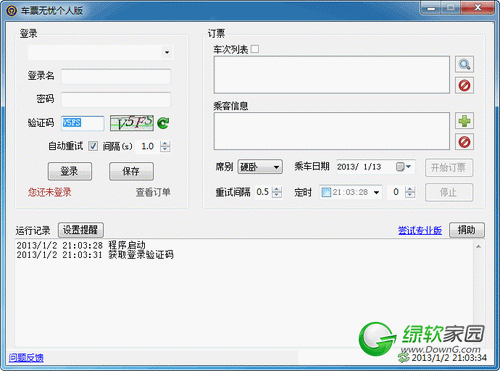 软件功能:1,自动重试登录2,保存多个备登录帐号,乘客信息在线保存3,多窗口同步操作4,查询添加订票车次5,定时抢票6,循环订票7,余票锁定(自动循环查询余票信息)8,后台识别验证码9,短信提示... ...