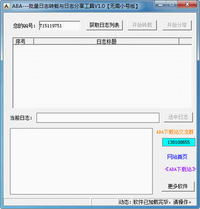 aba批量刷qq空间日志转载与分享工具功能: