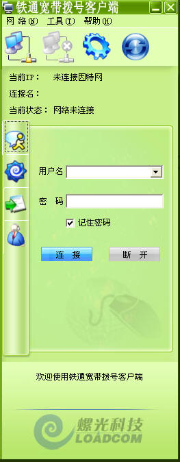 铁通宽带拨号客户端是专门针对国内广大铁通宽带拨号用户定制的免费拨号软件。具有绿色无插件,拨号速度快,占用资源少,并可以设置自动运行,自动拨号,断线后自动重连、定时关机,拨号连接进行代理设置等功能。 铁通宽带拨号客户端内置的辅助功能,您可以将常用的软件添加到这里,进行分组保存。以后只需打开拨号客户端,就可以直接启动您的应用程序