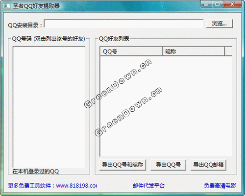圣者qq好友提取器,可以提取本机所有登录过的qq的好友列表,并可以导出好友列表,导出好友qq邮箱等。此工具软件配合qq项目做网赚,如虎添翼。导出qq和昵称时,格式为 (qq号码----昵称)。