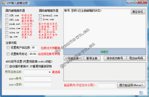 协助你轻松注册大量的免费邮箱,智能自动注册,并内置换ip,清cookie,清各种记录等功能!