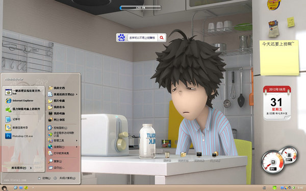 这款xp主题的电脑桌面是一个年轻人在烤面包的场面,相信很多ol都有熟悉的感觉吧,很多人的早餐都是牛奶+面包呢!