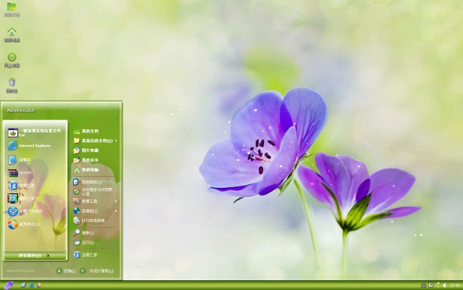 这款xp主题的电脑壁纸就是在绿色的花丛中有着紫色的笑声盛开着,真是一幅唯美的春天美景图呢!